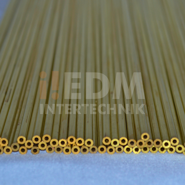 Microtubos de latão para erosão de furo rápido, tolerância dimensional de +0/-0.20 mm.